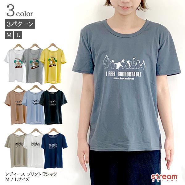 Tシャツ レディース 半袖 カジュアル オシャレ かわいい カットソー 犬 ペンギン 猫 アニマル プチプラ M L ゆうパケット3点まで可 T S0251 B Stream 通販 Yahoo ショッピング